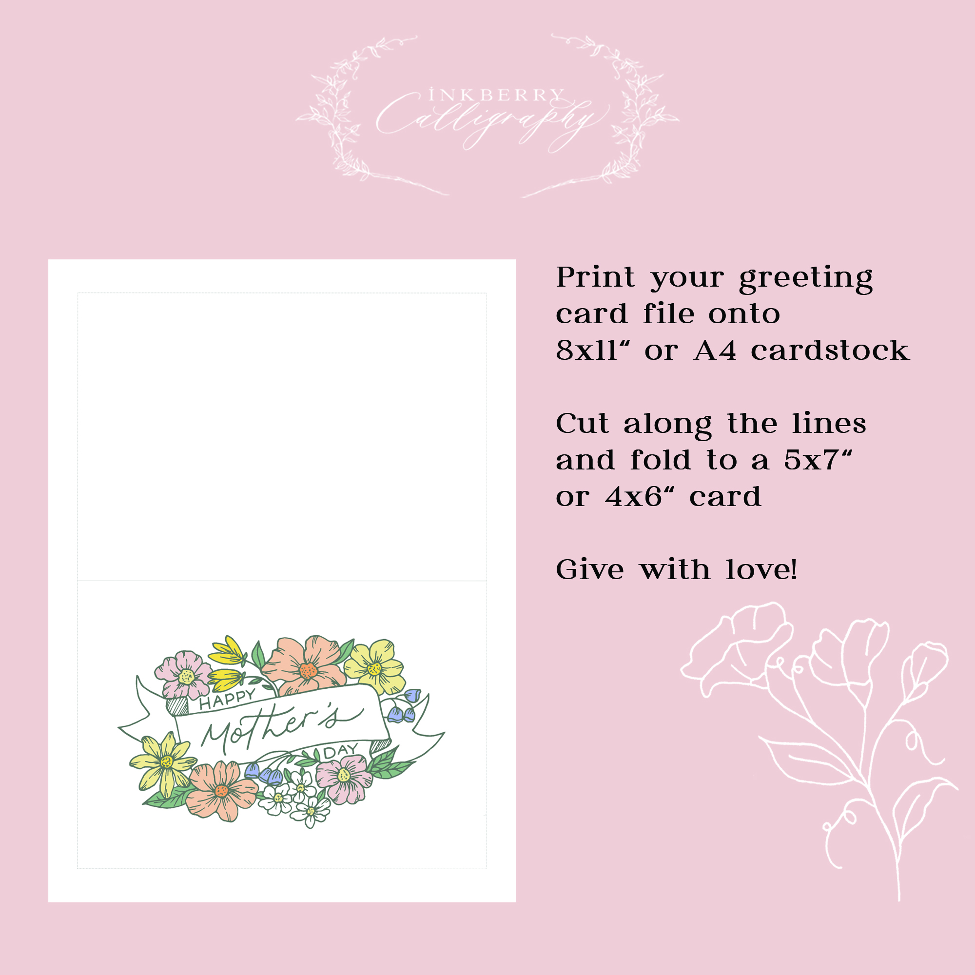 This listing is an instant, digital download only, so no physical item will be mailed to you. It is a printable Mother’s Day Card